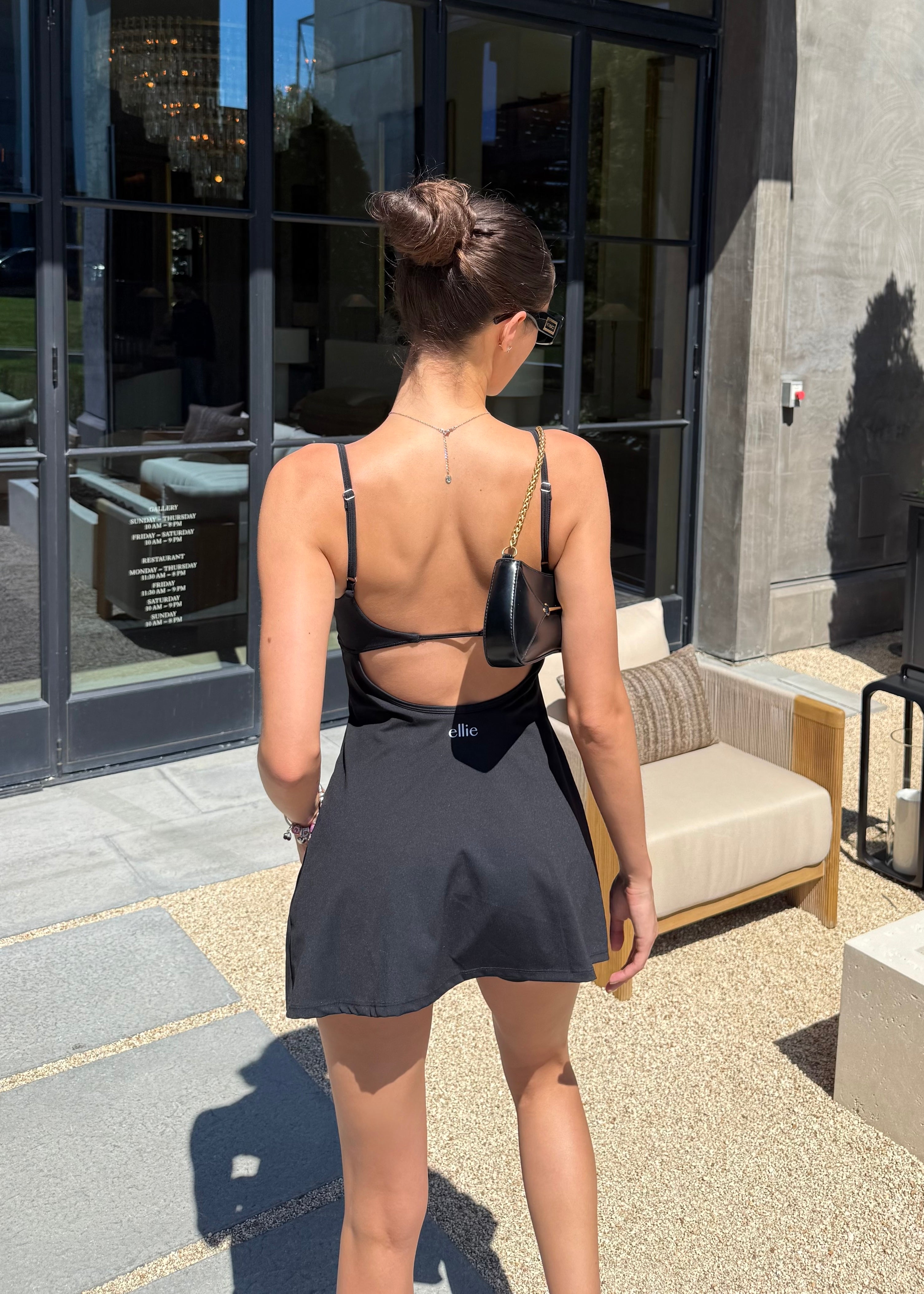 Our Luna Mini Dress is crafted to flatter with its sculpting fit and playful silhouette. Designed with a strappy open-back detail, a flowy skirt, and built-in shorts for extra coverage, it moves effortlessly with you—perfect for sunny days, brunch dates, or casual strolls.